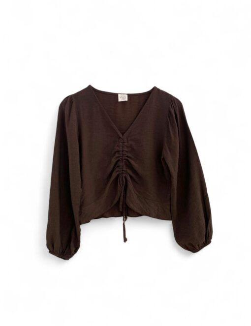 Home NOVEDADES Blusa fruncido cordón 🔍 Blusa fruncido cordón16,00€ Blusa lisa en tejido de viscosa con cuello de pico y cordón ajustable delantero. Puño elástico. Talla única (36-40) 85% viscosa 15% poliamida Color Elige una opciónAntracitaMarrón chocolateCrudoLimpiar Blusa fruncido cordón cantidad Añadir al carrito Categorías: Blusas y tops, NOVEDADES Etiquetas: blusa con fruncido, blusa crop mujer, blusa cuello de pico, blusa lisa mujer Descripción La modelo mide 170 cm También podría interesarte... Blusa rayas maxivolante 22,00€ Seleccionar opciones Este producto tiene múltiples variantes. Las opciones se pueden elegir en la página de producto