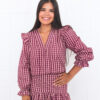 Home CONJUNTOS Blusa pico cuadros 🔍 Blusa pico cuadros22,00€ Blusa de cuadros con cuello de pico y volante en la hombrera. Manga larga abullonada con puño elástico. Tallas: S (36-38), M (38-40) 100% algodón Color Elige una opciónBerenjenaAzul Talla Elige una opciónSMSMLimpiar Blusa pico cuadros cantidad Añadir al carrito Categorías: Blusas y tops, CONJUNTOS, NOVEDADES Etiquetas: blusa con volante, blusa cuello pico, blusa de cuadros, blusa de manga larga Descripción La modelo mide 160 cm y lleva talla S