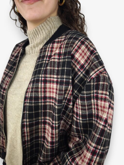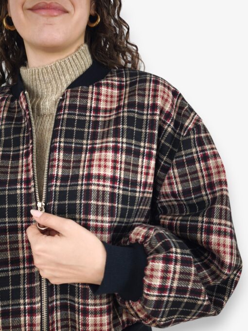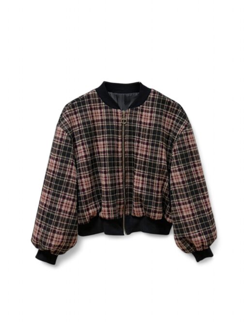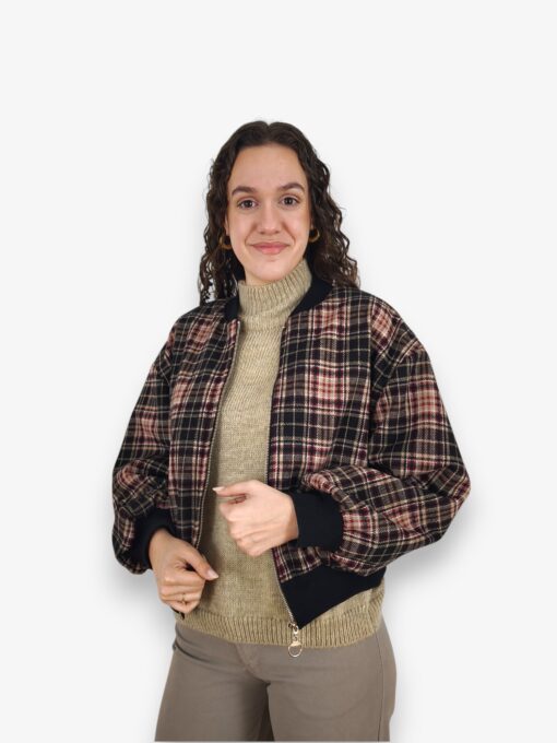Chaqueta estilo bomber con estampado de cuadro escoces. Cuello, bajo y puños de punto. Cierre de cremallera.