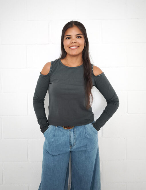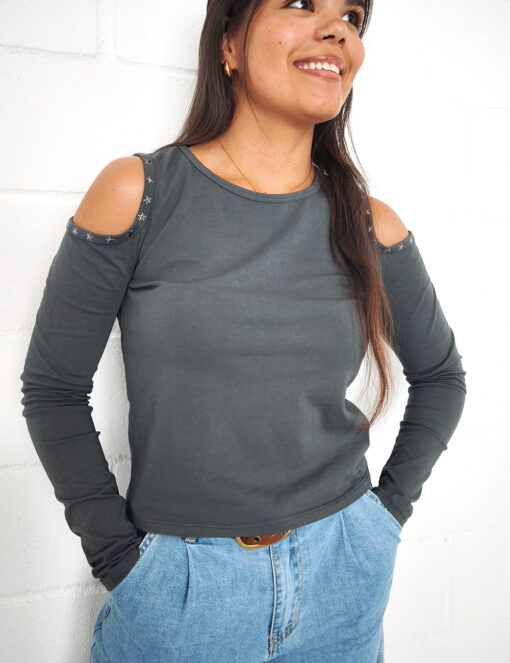 Home NOVEDADES Camiseta tachas sin hombros 🔍 Camiseta tachas sin hombros16,00€ Camiseta lisa de algodón con tejido elástico. Abertura en los hombros y tachuelas de estrellas Talla única (34-38) 100% algodón Color Elige una opciónBeigeAntracitaBurdeosBlancoMarrónLimpiar Camiseta tachas sin hombros cantidad Añadir al carrito Categorías: Blusas y tops, BROWN VIBES, NOVEDADES Etiquetas: camiseta de algodón, camiseta de mujer, camiseta sin hombros, camiseta tachas, camiseta tachuelas Descripción La modelo mide 160cm También podría interesarte... Camiseta tira tachas 16,00€ Seleccionar opciones Este producto tiene múltiples variantes. Las opciones se pueden elegir en la página de producto Camiseta tachas pico 16,00€ Seleccionar opciones Este producto tiene múltiples variantes. Las opciones se pueden elegir en la página de producto Camiseta asimétrica tachas 16,00€ Seleccionar opciones Este producto tiene múltiples variantes. Las opciones se pueden elegir en la página de producto