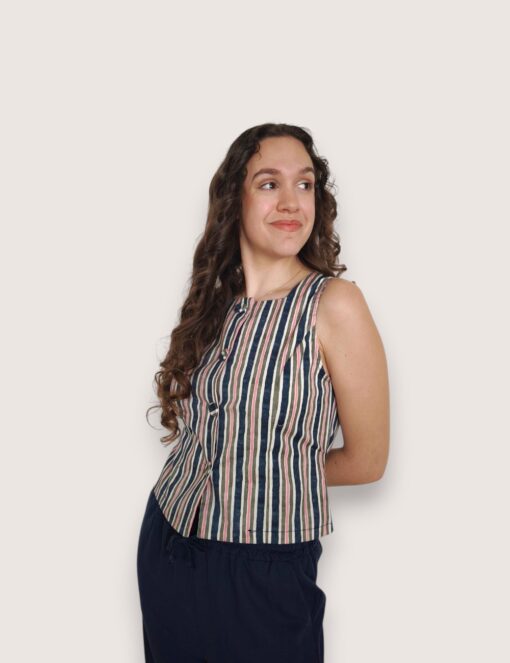 Home NOVEDADES Chaleco rayas botón forrado 🔍 Chaleco rayas botón forrado22,00€ Top tipo chaleco con estampado de rayas. Botones forrados y lazo para atar a la espalda. Tallas: S (36-38), M (38-40), L (40-42) 97% algodón 3 % elastán Talla Elige una opciónSMLSMLLimpiar Chaleco rayas botón forrado cantidad Añadir al carrito Categorías: Blusas y tops, NOVEDADES, TOTAL LOOK Etiquetas: blusa tirante rayas, chaleco rayas mujer, top sin mangas rayas Descripción La modelo mide 170 cm y lleva talla S También podría interesarte... Pantalón lino cordón 20,00€ Seleccionar opciones Este producto tiene múltiples variantes. Las opciones se pueden elegir en la página de producto