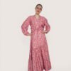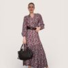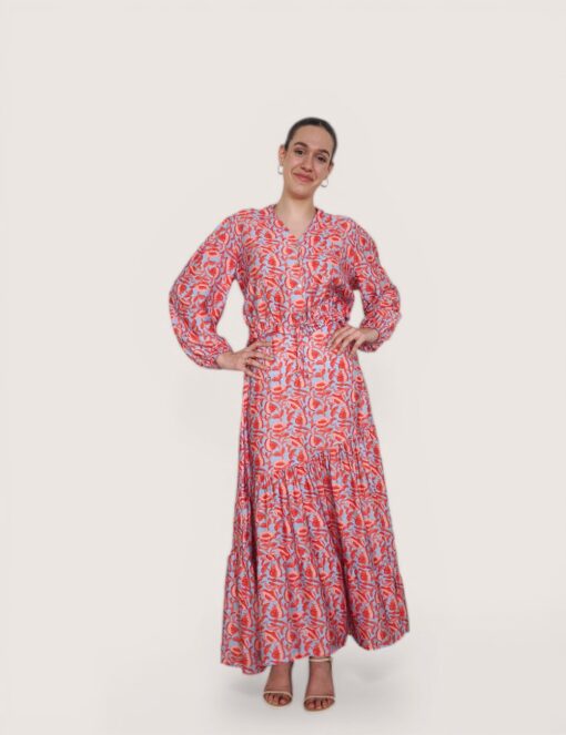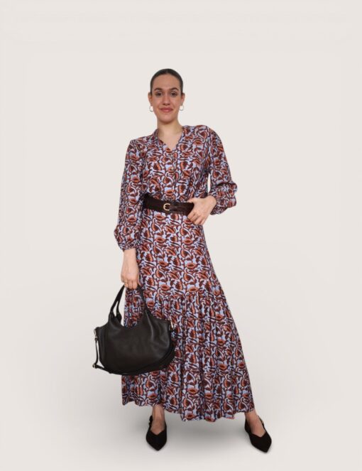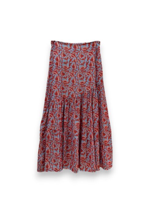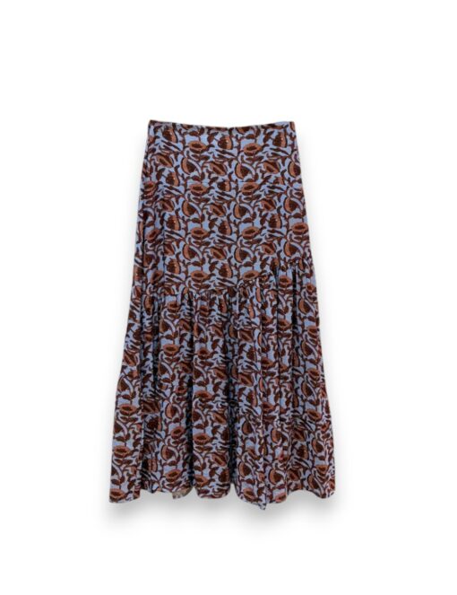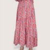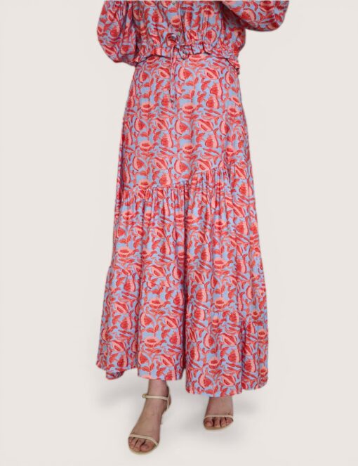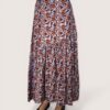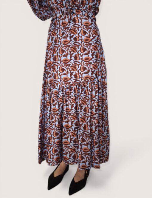 Falda larga estampada con vuelo y cinturilla elástica.  Corte diagonal y tejido fluido.