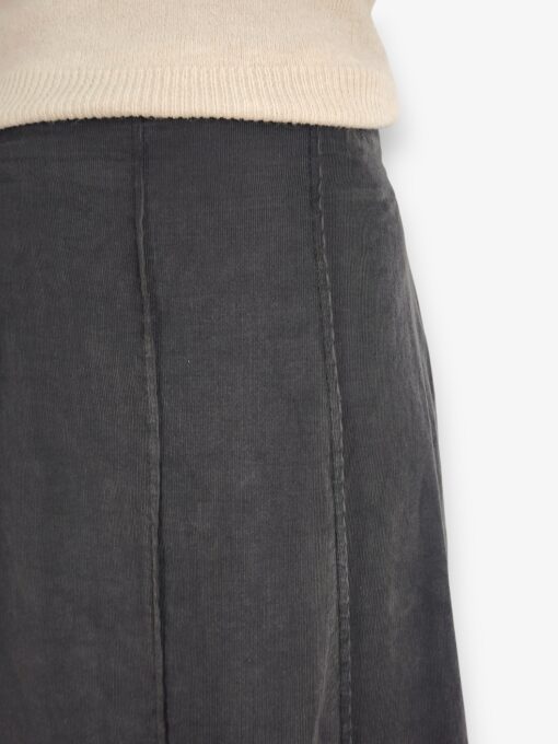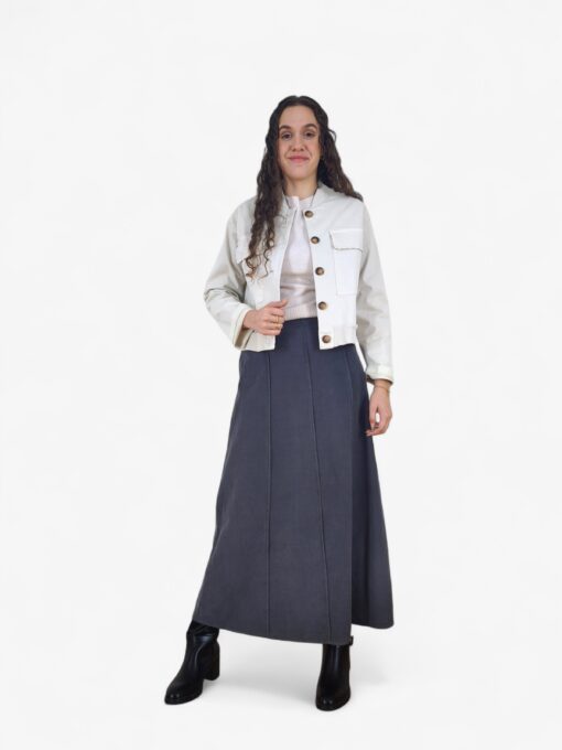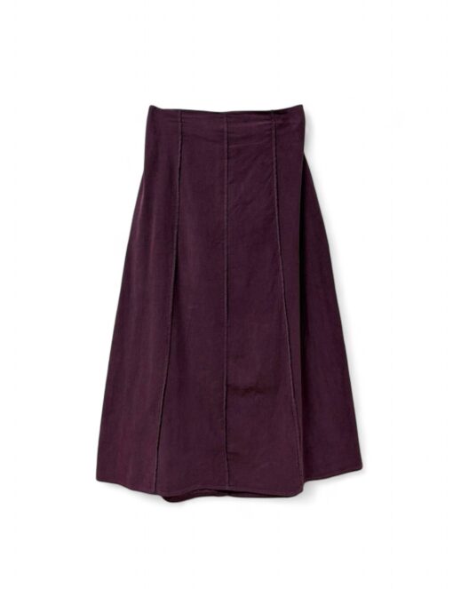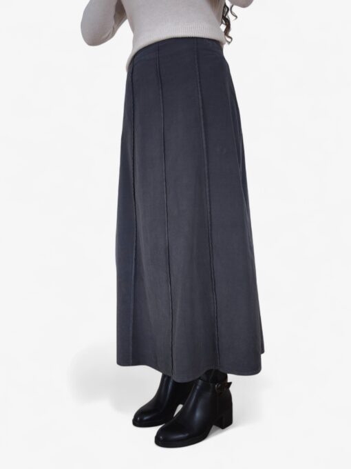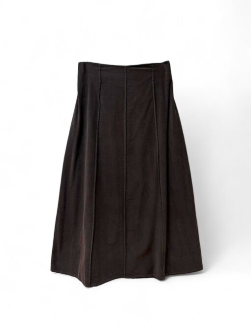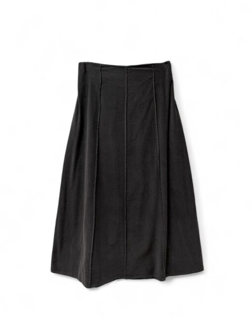 Falda larga lisa en tejido de de micropana ligeramente elástica. Estructura de capa con costuras vistas verticales.