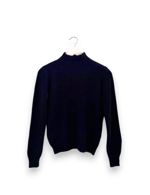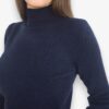 Jersey liso de lana con cuello chimenea y corte ajustado. Bajo y puños con rib ancho elástico.