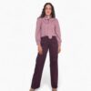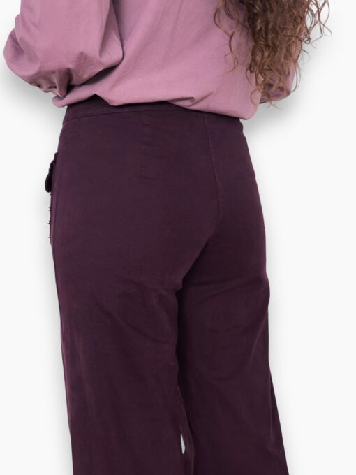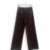 Pantalón recto de tiro medio en tejido algodón ligeramente elástico. Bolsillos delanteros con solapa decorados con tachuelas. Cierre de botón y cremallera.