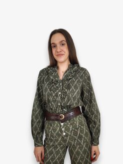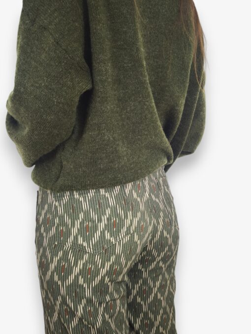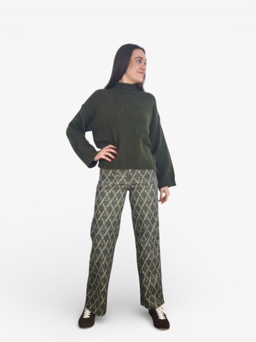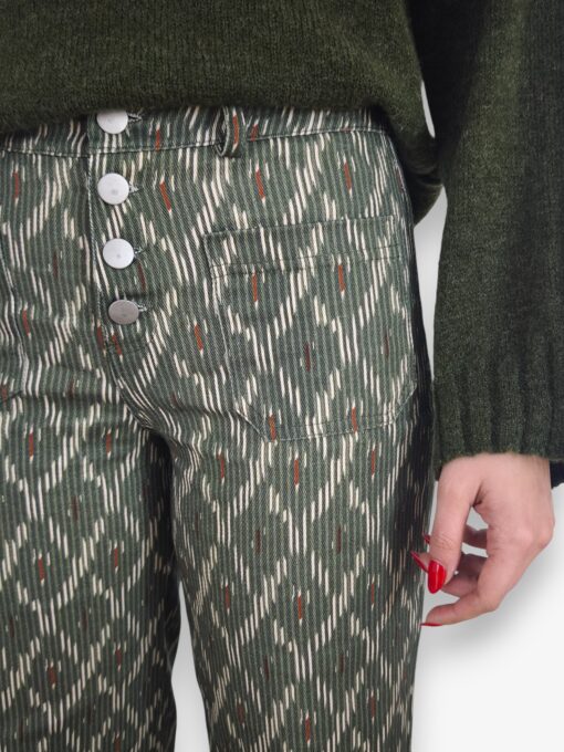 Pantalón estampado de corte recto y tiro medio.  Bolsillos delanteros y traseros. Talla pequeño.