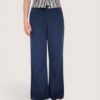 Pantalón liso fluido de corte recto en tejido de lino. Cinturilla elástica ajustable con cordón.
