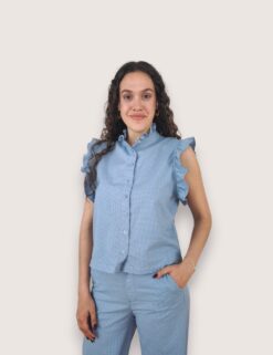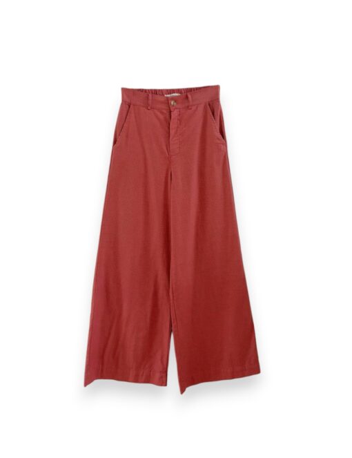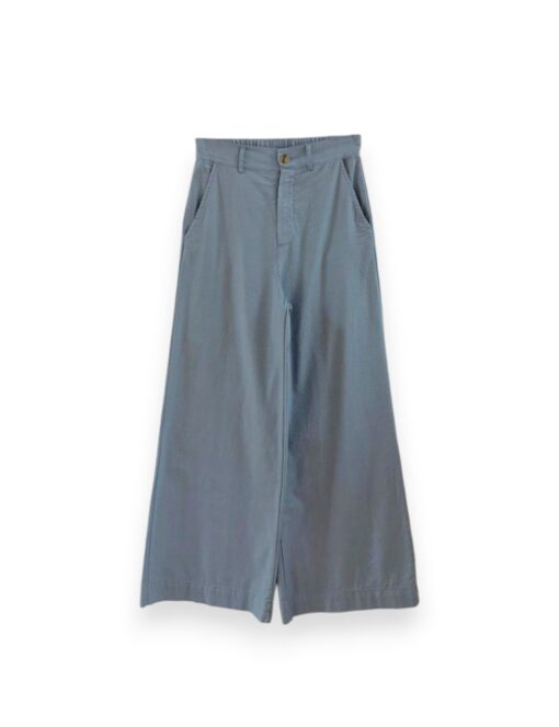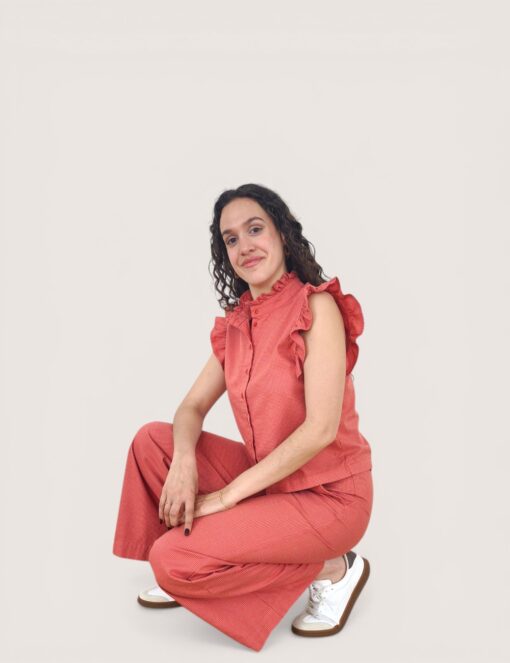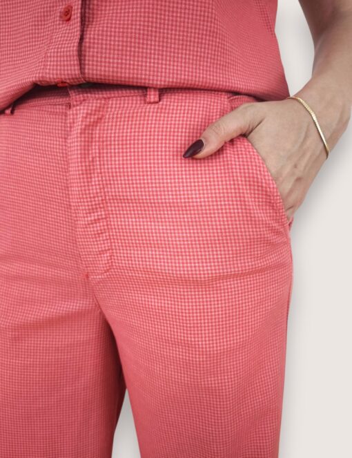 Pantalón recto tipo culotte en tejido de algodón. Bolsillos laterales y cierre de botón y cremallera. Estampado de cuadro vichy.